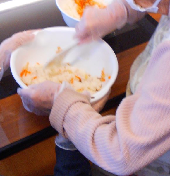 ご飯とちらし寿司の素を混ぜていきます。